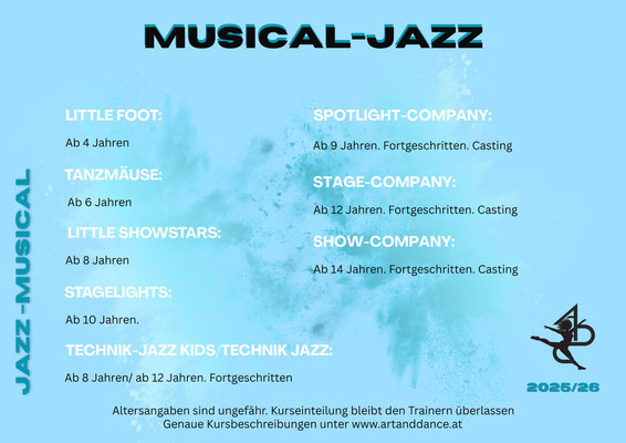 Mit Casting. Da Lyrical-Jazz, Ballett- und Jazz-Technik sowie Contemporary/Modern in das Training einfließen, wird dieser Kurs auf klassischer Technik aufgebaut. Begonnen wird mit verschiedenen Aufwärmübungen, die in unterschiedliche Technikübungen übergehen. Die Choreografien werden aus den verschiedenen Genres erarbeitet. Dieser Kurs ist für die burgenländischen Landesmeisterschaften, nationale und internationale Wettbewerbe eingeplant.